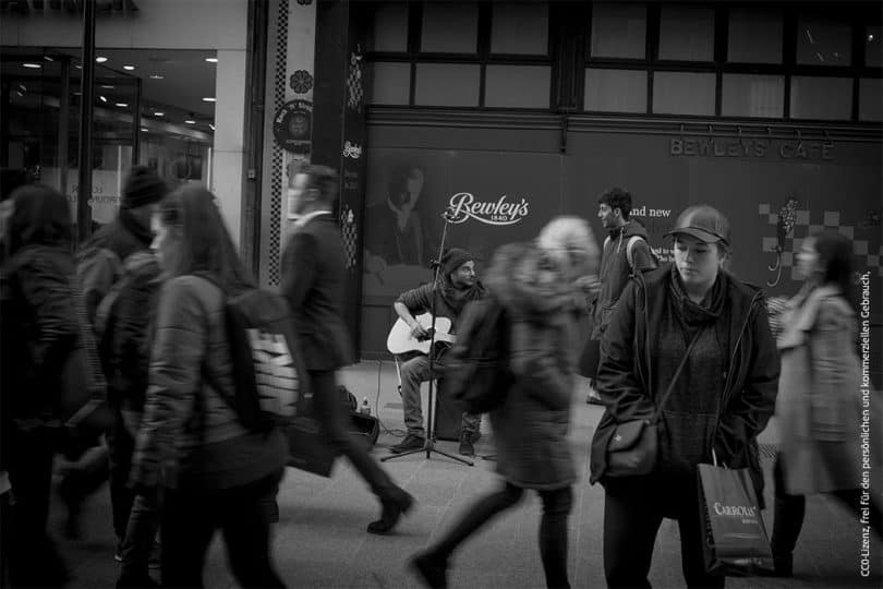 Bonos Herz schlägt noch immer für Straßenmusiker – sogar so stark, dass er hin und wieder selbst zum Busker wird. Jedes Jahr vor Weihnachten treten irische Stars in Dublin auf der Straße auf, um für einen guten Zweck zu singen. Diese Charity-Aktion ist mittlerweile Tradition und zieht viele Menschen an. Menschentrauben lassen sich da kaum vermeiden – in dem Fall drückt die Stadtverwaltung aber sicher ein Auge zu.