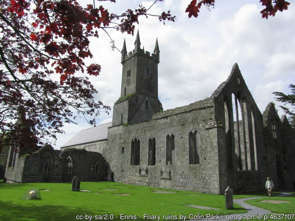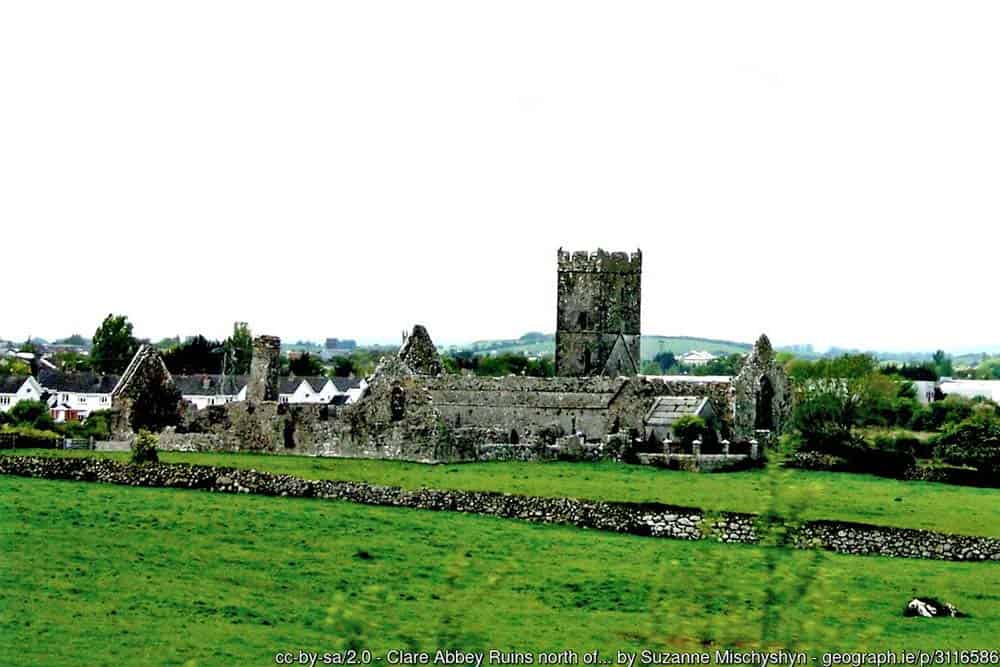Die Ruinen der Clare Abbey liegen etwas abseits der Stadt Ennis, an den Ufern des Flusses Fergus, unweit von der N85 entfernt. Die Gründung dieser Abtei geht auf Augustinermönche zurück. Zu seiner Zeit war sie die größte und wichtigste Abtei der Augustiner im gesamten County Clare. Direkt vor den Mauern des Klosters ereignete sich im Jahre 1268 eine blutige Schlacht zweier verfeindeter Clans, die Chronisten in drastischen Worten festhielten.